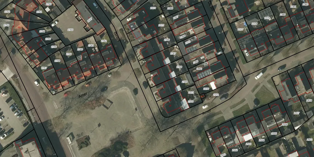 Het perceel waarop Amer 45 staat heeft een oppervlakte van 254 m². Dit is een middelgroot perceel. De perceeloppervlakte wordt geregistreerd door het Kadaster. Gedetailleerde informatie over de maten van dit perceel kunt u vinden in het rapport Kadastrale kaart met maatvoering van Amer 45.