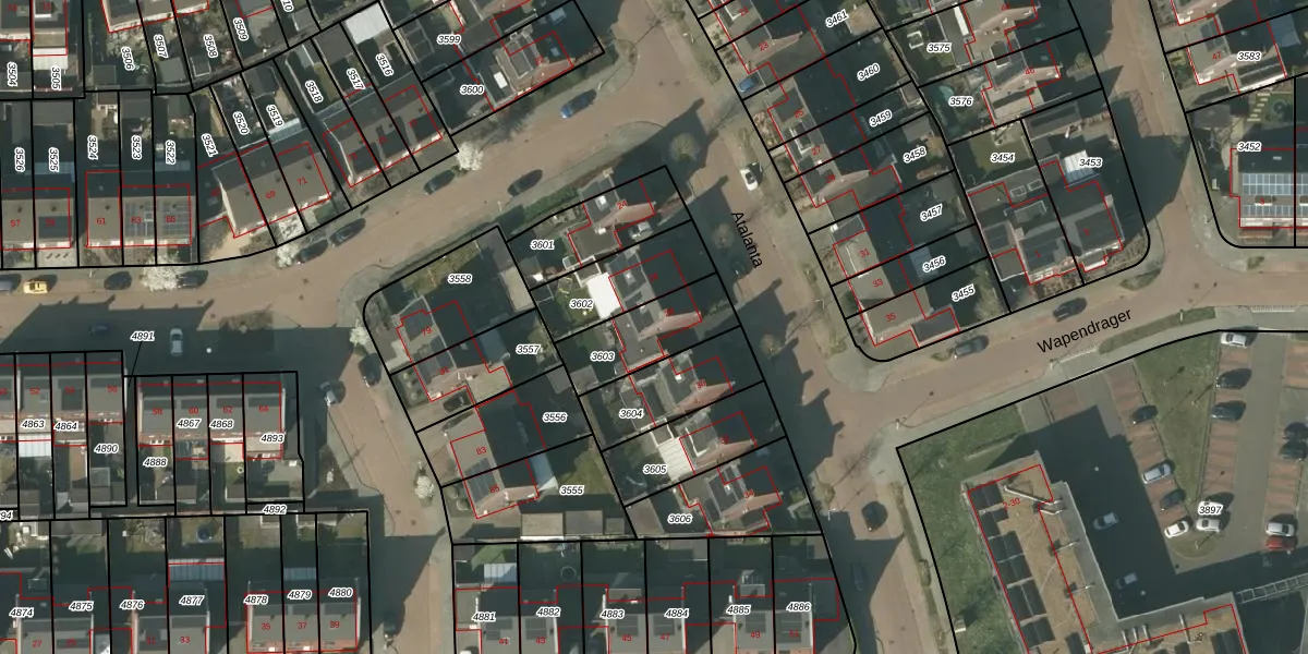 Gebruik de zoekbalk of klik op een perceel voor informatie over de adressen binnen dit perceel.