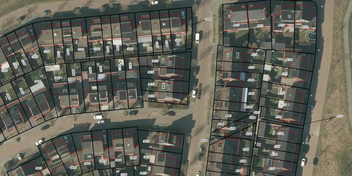 Het perceel waarop Atalanta 40 staat heeft een oppervlakte van 184 m². Dit is een middelgroot perceel. De perceeloppervlakte wordt geregistreerd door het Kadaster. Gedetailleerde informatie over de maten van dit perceel kunt u vinden in het rapport Kadastrale kaart met maatvoering van Atalanta 40.