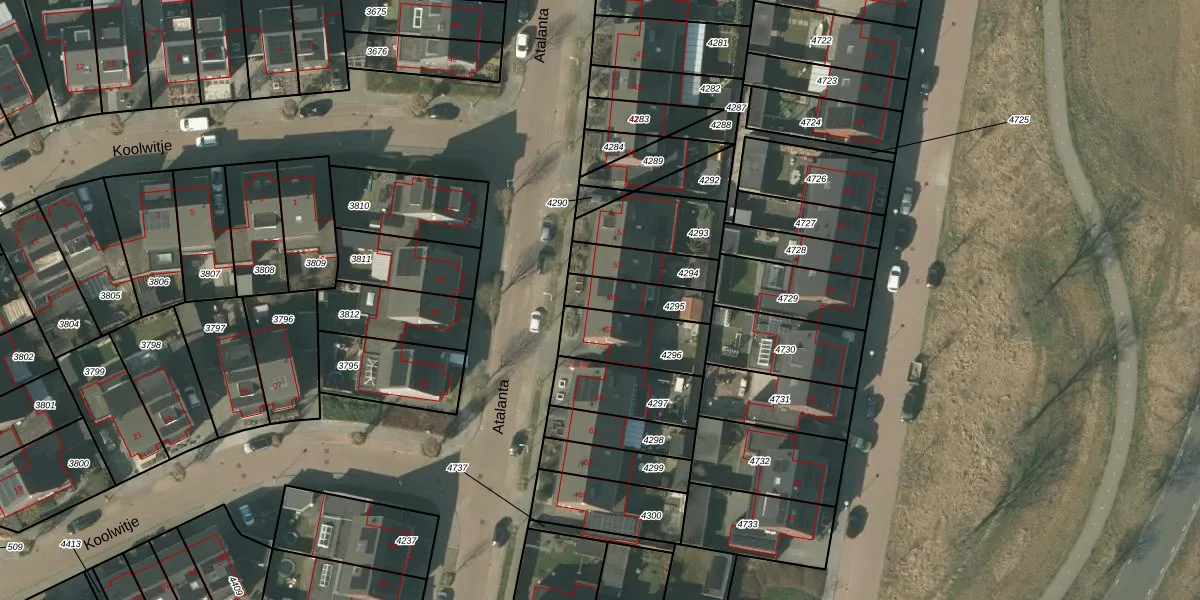Het perceel waarop Atalanta 55 staat heeft een oppervlakte van 133 m². Dit is een middelgroot perceel. De perceeloppervlakte wordt geregistreerd door het Kadaster. Gedetailleerde informatie over de maten van dit perceel kunt u vinden in het rapport Kadastrale kaart met maatvoering van Atalanta 55.