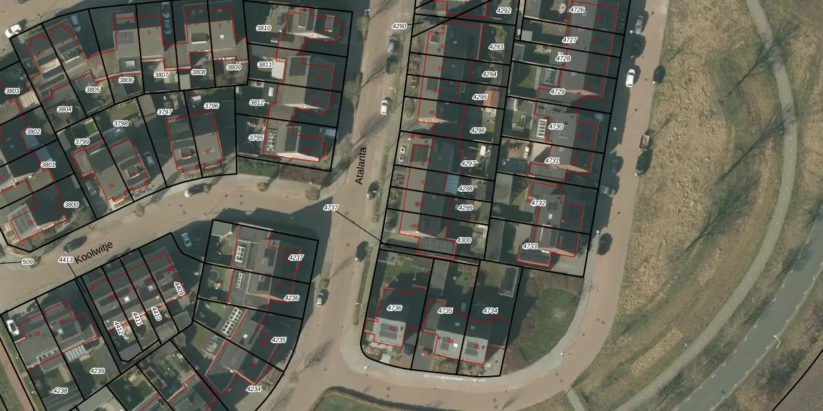 Het perceel waarop Atalanta 63 staat heeft een oppervlakte van 137 m². Dit is een middelgroot perceel. De perceeloppervlakte wordt geregistreerd door het Kadaster. Gedetailleerde informatie over de maten van dit perceel kunt u vinden in het rapport Kadastrale kaart met maatvoering van Atalanta 63.
