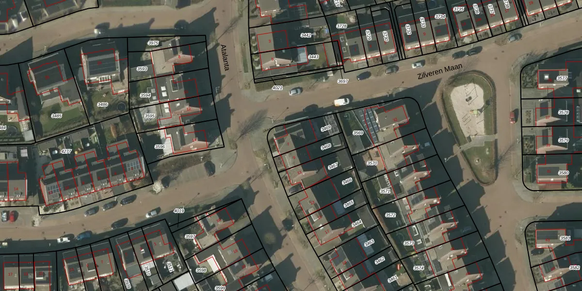 Het perceel waarop Atalanta 7 staat heeft een oppervlakte van 213 m². Dit is een middelgroot perceel. De perceeloppervlakte wordt geregistreerd door het Kadaster. Gedetailleerde informatie over de maten van dit perceel kunt u vinden in het rapport Kadastrale kaart met maatvoering van Atalanta 7.