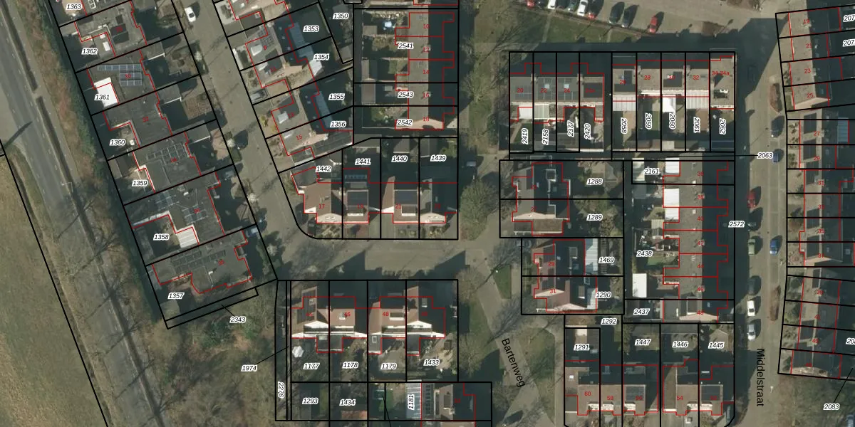 Het perceel waarop Bartenweg 23 staat heeft een oppervlakte van 216 m². Dit is een middelgroot perceel. De perceeloppervlakte wordt geregistreerd door het Kadaster. Gedetailleerde informatie over de maten van dit perceel kunt u vinden in het rapport Kadastrale kaart met maatvoering van Bartenweg 23.