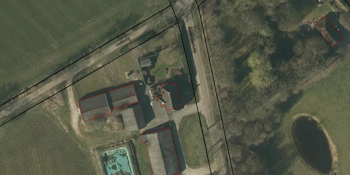 Het perceel waarop Beliënberkdijk 12 staat heeft een oppervlakte van 1,8 ha. Dit is een zeer groot perceel. De perceeloppervlakte wordt geregistreerd door het Kadaster. Gedetailleerde informatie over de maten van dit perceel kunt u vinden in het rapport Kadastrale kaart met maatvoering van Beliënberkdijk 12.