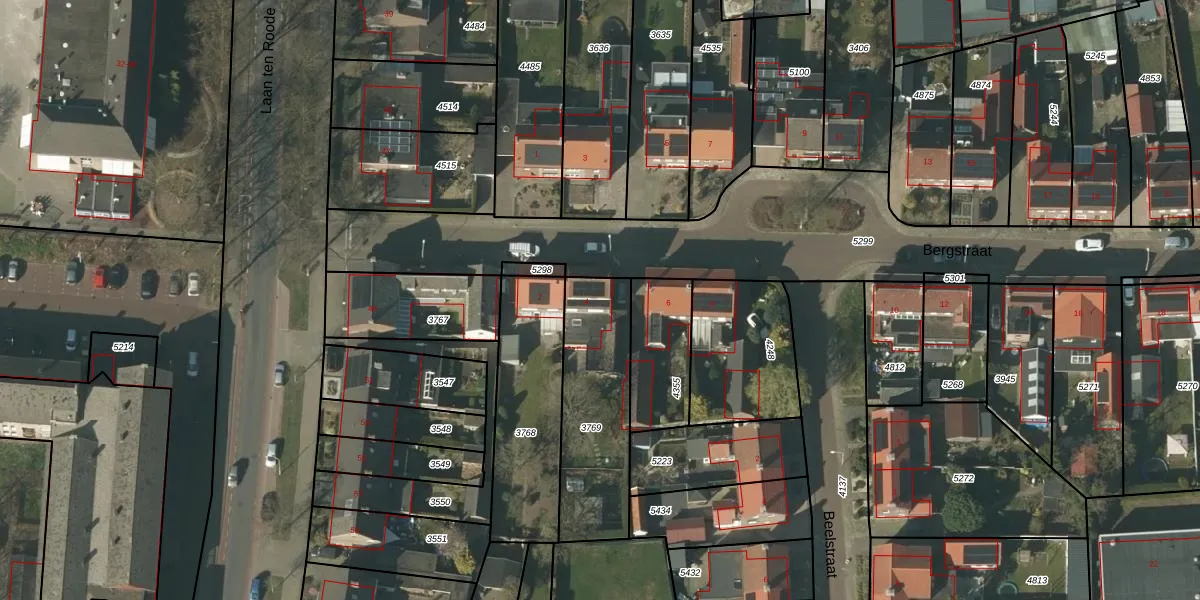 Gebruik de zoekbalk of klik op een perceel voor informatie over de adressen binnen dit perceel.