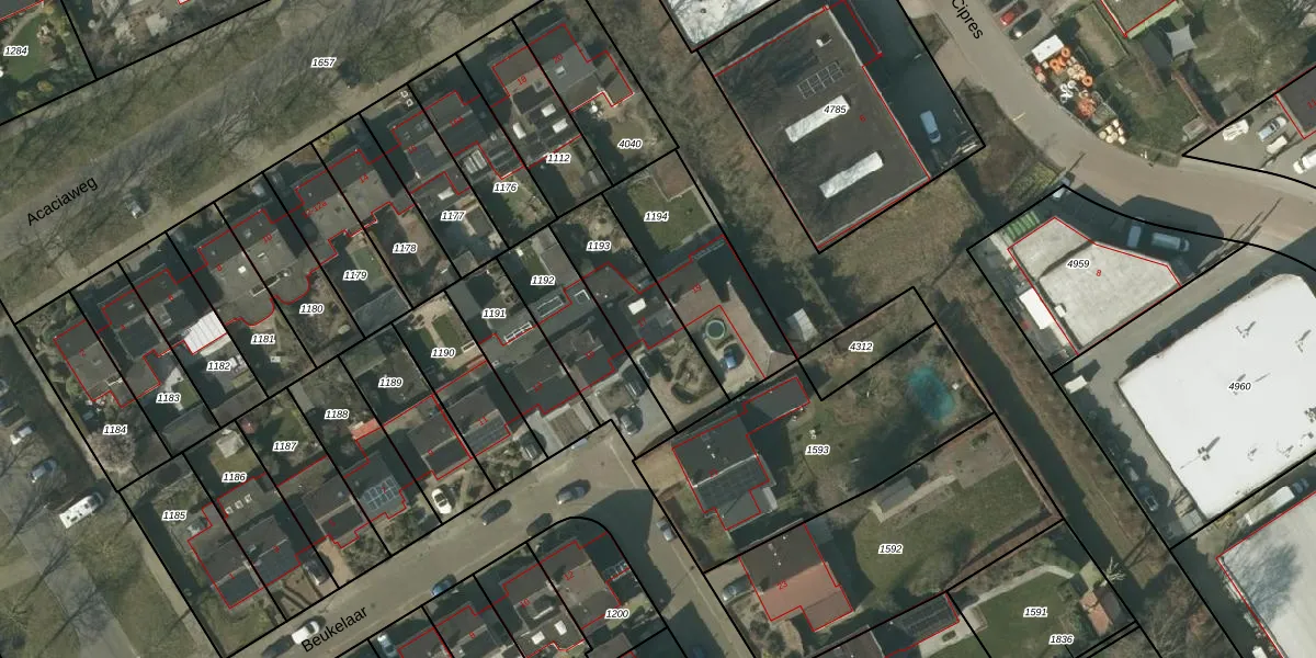 Het perceel waarop Beukelaar 17 staat heeft een oppervlakte van 349 m². Dit is een groot perceel. De perceeloppervlakte wordt geregistreerd door het Kadaster. Gedetailleerde informatie over de maten van dit perceel kunt u vinden in het rapport Kadastrale kaart met maatvoering van Beukelaar 17.