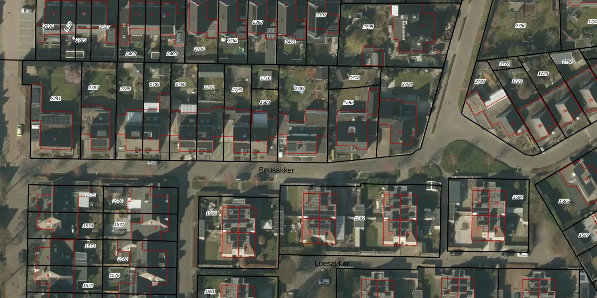 Het perceel waarop Beusakker 11 staat heeft een oppervlakte van 549 m². Dit is een groot perceel. De perceeloppervlakte wordt geregistreerd door het Kadaster. Gedetailleerde informatie over de maten van dit perceel kunt u vinden in het rapport Kadastrale kaart met maatvoering van Beusakker 11.