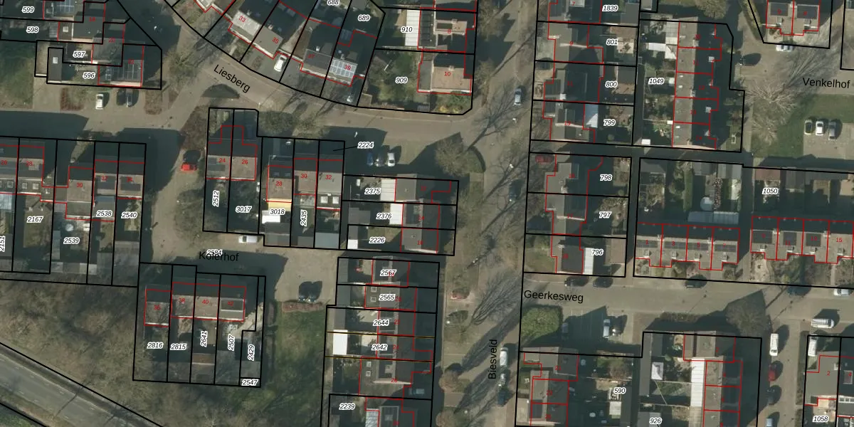 Het perceel waarop Biesveld 14 staat heeft een oppervlakte van 165 m². Dit is een middelgroot perceel. De perceeloppervlakte wordt geregistreerd door het Kadaster. Gedetailleerde informatie over de maten van dit perceel kunt u vinden in het rapport Kadastrale kaart met maatvoering van Biesveld 14.