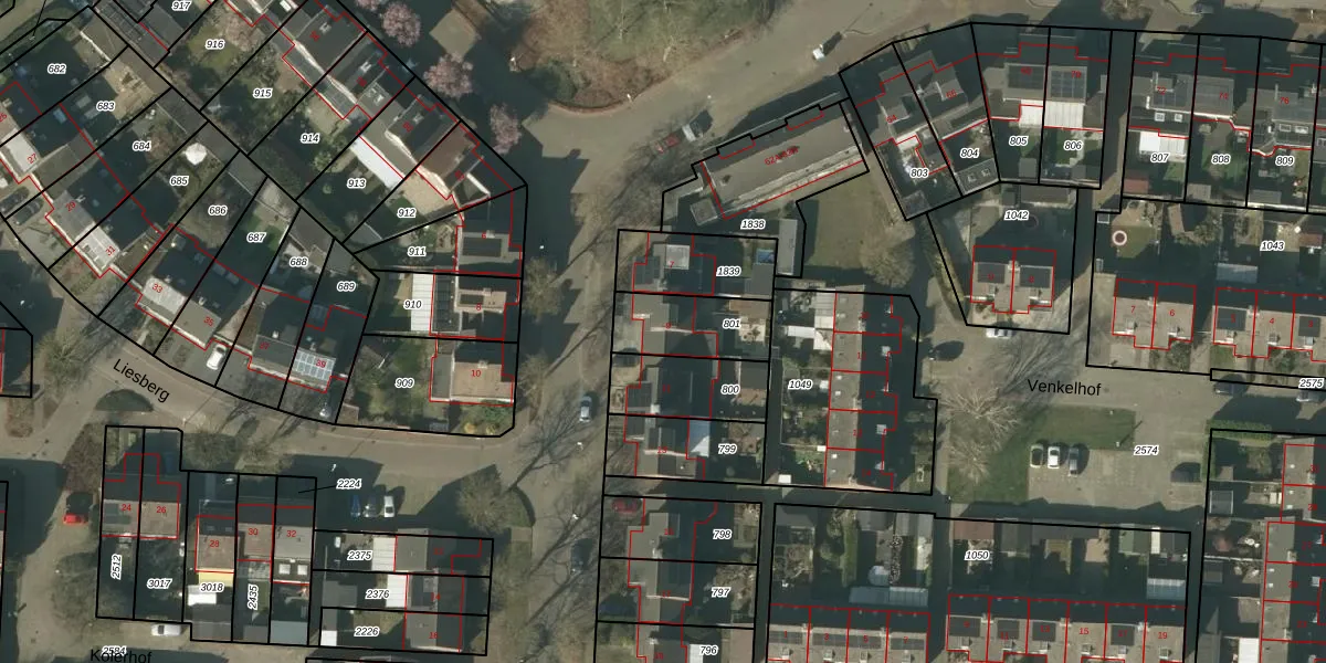 Gebruik de zoekbalk of klik op een perceel voor informatie over de adressen binnen dit perceel.