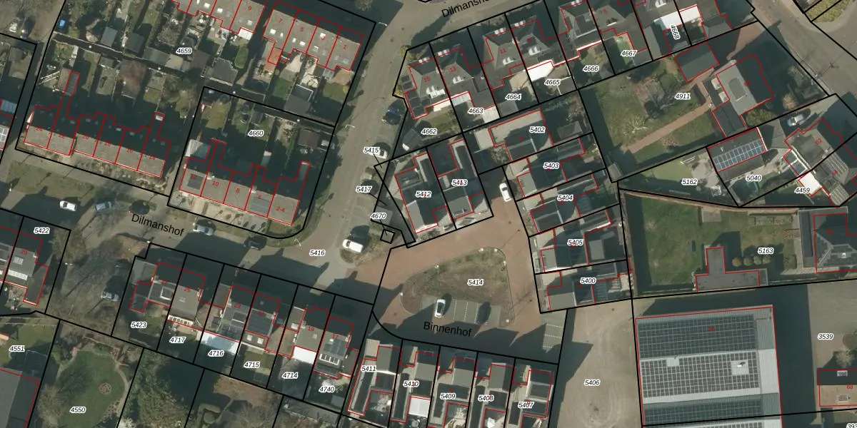 Gebruik de zoekbalk of klik op een perceel voor informatie over de adressen binnen dit perceel.