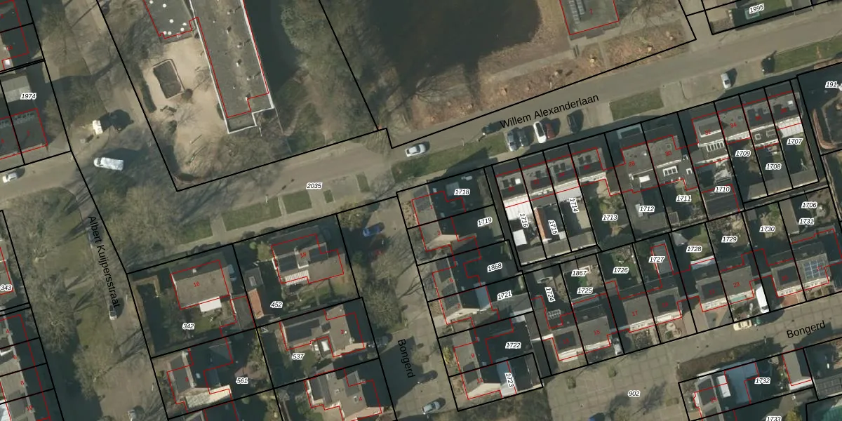 Het perceel waarop Bongerd 1 staat heeft een oppervlakte van 197 m². Dit is een middelgroot perceel. De perceeloppervlakte wordt geregistreerd door het Kadaster. Gedetailleerde informatie over de maten van dit perceel kunt u vinden in het rapport Kadastrale kaart met maatvoering van Bongerd 1.