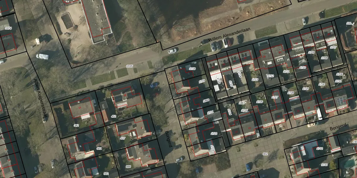 Het perceel waarop Bongerd 3 staat heeft een oppervlakte van 195 m². Dit is een middelgroot perceel. De perceeloppervlakte wordt geregistreerd door het Kadaster. Gedetailleerde informatie over de maten van dit perceel kunt u vinden in het rapport Kadastrale kaart met maatvoering van Bongerd 3.