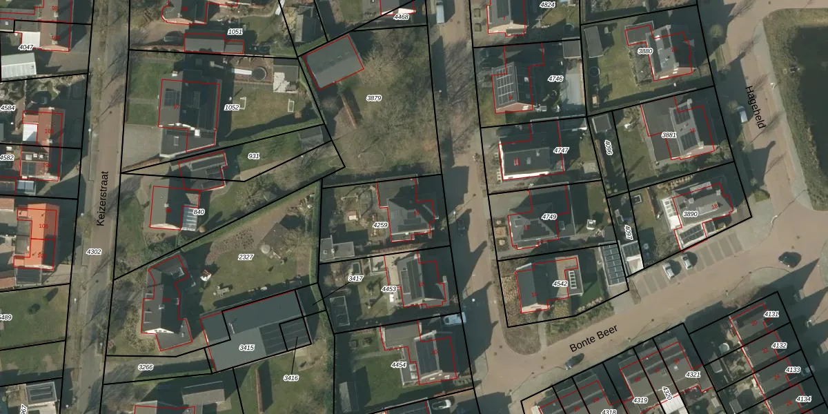 Het perceel waarop Bonte Beer 16 staat heeft een oppervlakte van 545 m². Dit is een groot perceel. De perceeloppervlakte wordt geregistreerd door het Kadaster. Gedetailleerde informatie over de maten van dit perceel kunt u vinden in het rapport Kadastrale kaart met maatvoering van Bonte Beer 16.