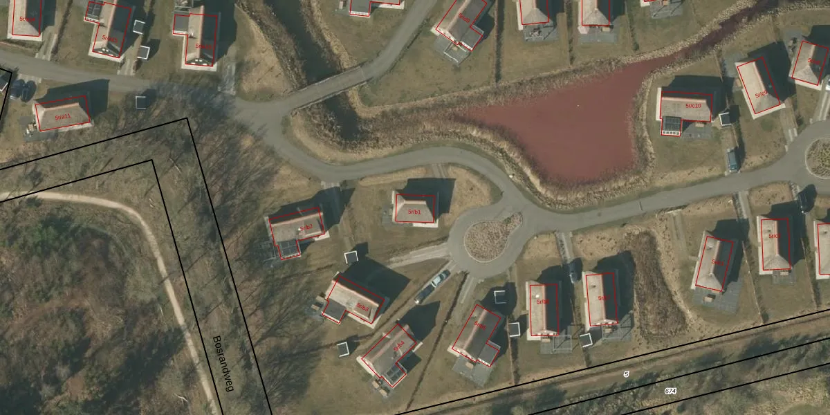 Het perceel waarop Bosrandweg 5-r-b1 staat heeft een oppervlakte van 8,6 ha. Dit is een zeer groot perceel. De perceeloppervlakte wordt geregistreerd door het Kadaster. Gedetailleerde informatie over de maten van dit perceel kunt u vinden in het rapport Kadastrale kaart met maatvoering van Bosrandweg 5-r-b1.