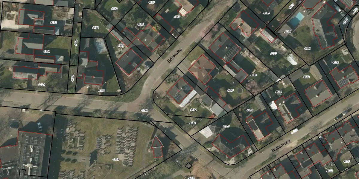 Het perceel waarop Brinkweg 14 staat heeft een oppervlakte van 664 m². Dit is een groot perceel. De perceeloppervlakte wordt geregistreerd door het Kadaster. Gedetailleerde informatie over de maten van dit perceel kunt u vinden in het rapport Kadastrale kaart met maatvoering van Brinkweg 14.
