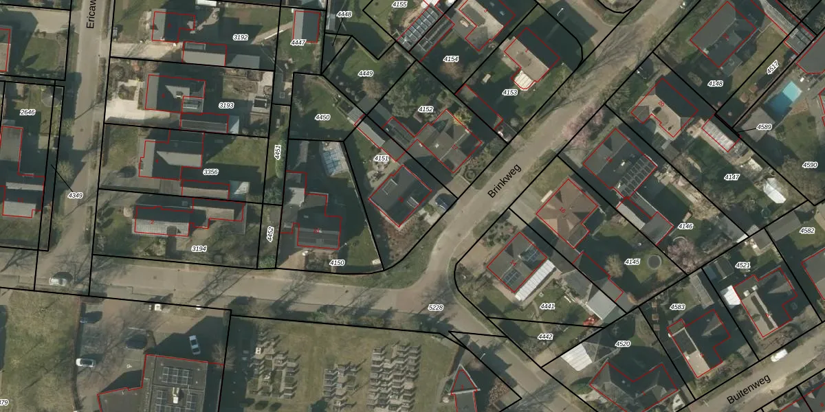 Het perceel waarop Brinkweg 15 staat heeft een oppervlakte van 515 m². Dit is een groot perceel. De perceeloppervlakte wordt geregistreerd door het Kadaster. Gedetailleerde informatie over de maten van dit perceel kunt u vinden in het rapport Kadastrale kaart met maatvoering van Brinkweg 15.