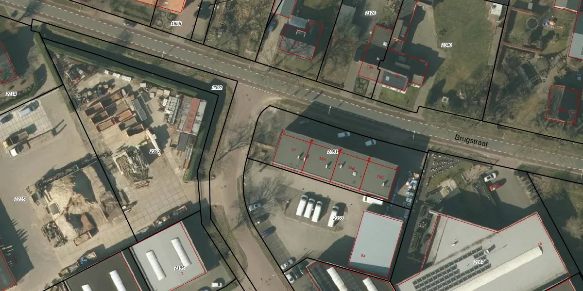 Brugstraat 16 is gelegen op kadastraal perceel SMR02T2351. Deze kadastrale aanduiding is uniek en wordt gebruikt door het Kadaster om eigendomsrechten en andere zakelijke rechten vast te leggen. Het perceel maakt onderdeel uit van de kadastrale gemeente Someren.