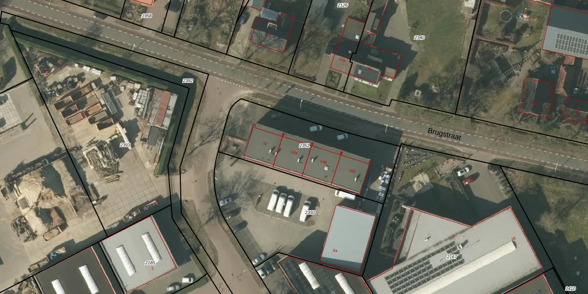 Brugstraat 16-a is gelegen op kadastraal perceel SMR02T2351. Deze kadastrale aanduiding is uniek en wordt gebruikt door het Kadaster om eigendomsrechten en andere zakelijke rechten vast te leggen. Het perceel maakt onderdeel uit van de kadastrale gemeente Someren.