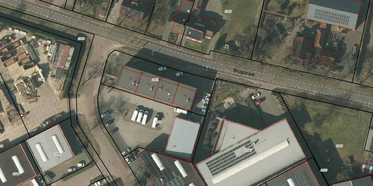 Brugstraat 16-c is gelegen op kadastraal perceel SMR02T2351. Deze kadastrale aanduiding is uniek en wordt gebruikt door het Kadaster om eigendomsrechten en andere zakelijke rechten vast te leggen. Het perceel maakt onderdeel uit van de kadastrale gemeente Someren.