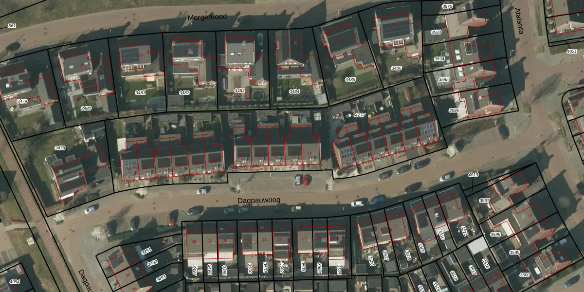 Het perceel waarop Dagpauwoog 16 staat heeft een oppervlakte van 2720 m². Dit is een zeer groot perceel. De perceeloppervlakte wordt geregistreerd door het Kadaster. Gedetailleerde informatie over de maten van dit perceel kunt u vinden in het rapport Kadastrale kaart met maatvoering van Dagpauwoog 16.