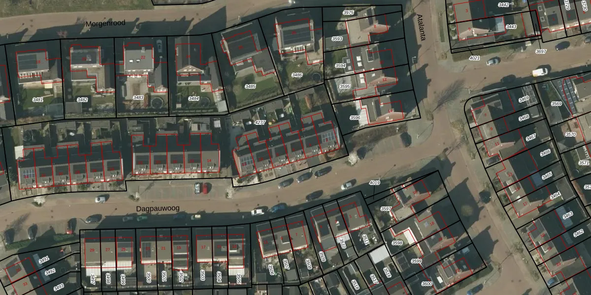 Het perceel waarop Dagpauwoog 6 staat heeft een oppervlakte van 2720 m². Dit is een zeer groot perceel. De perceeloppervlakte wordt geregistreerd door het Kadaster. Gedetailleerde informatie over de maten van dit perceel kunt u vinden in het rapport Kadastrale kaart met maatvoering van Dagpauwoog 6.