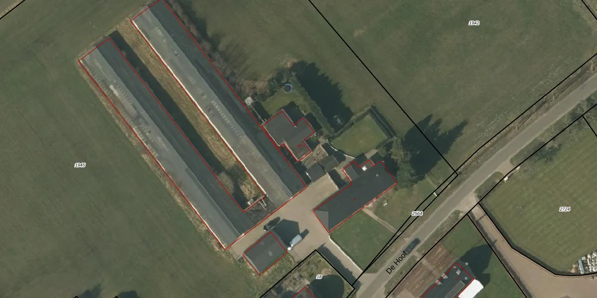 Het perceel waarop De Hoof 4-a staat heeft een oppervlakte van 1,9 ha. Dit is een zeer groot perceel. De perceeloppervlakte wordt geregistreerd door het Kadaster. Gedetailleerde informatie over de maten van dit perceel kunt u vinden in het rapport Kadastrale kaart met maatvoering van De Hoof 4-a.