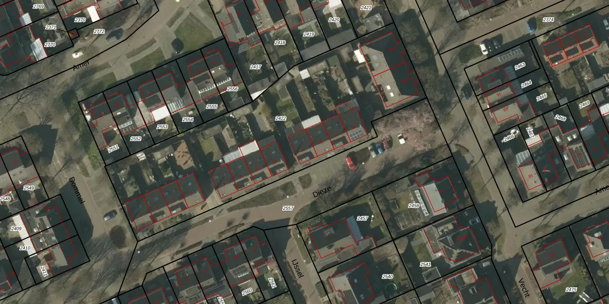 Het perceel waarop Dieze 17 staat heeft een oppervlakte van 2990 m². Dit is een zeer groot perceel. De perceeloppervlakte wordt geregistreerd door het Kadaster. Gedetailleerde informatie over de maten van dit perceel kunt u vinden in het rapport Kadastrale kaart met maatvoering van Dieze 17.