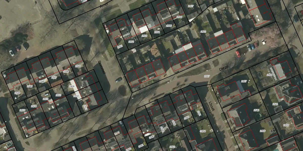 Het perceel waarop Dieze 5 staat heeft een oppervlakte van 2990 m². Dit is een zeer groot perceel. De perceeloppervlakte wordt geregistreerd door het Kadaster. Gedetailleerde informatie over de maten van dit perceel kunt u vinden in het rapport Kadastrale kaart met maatvoering van Dieze 5.
