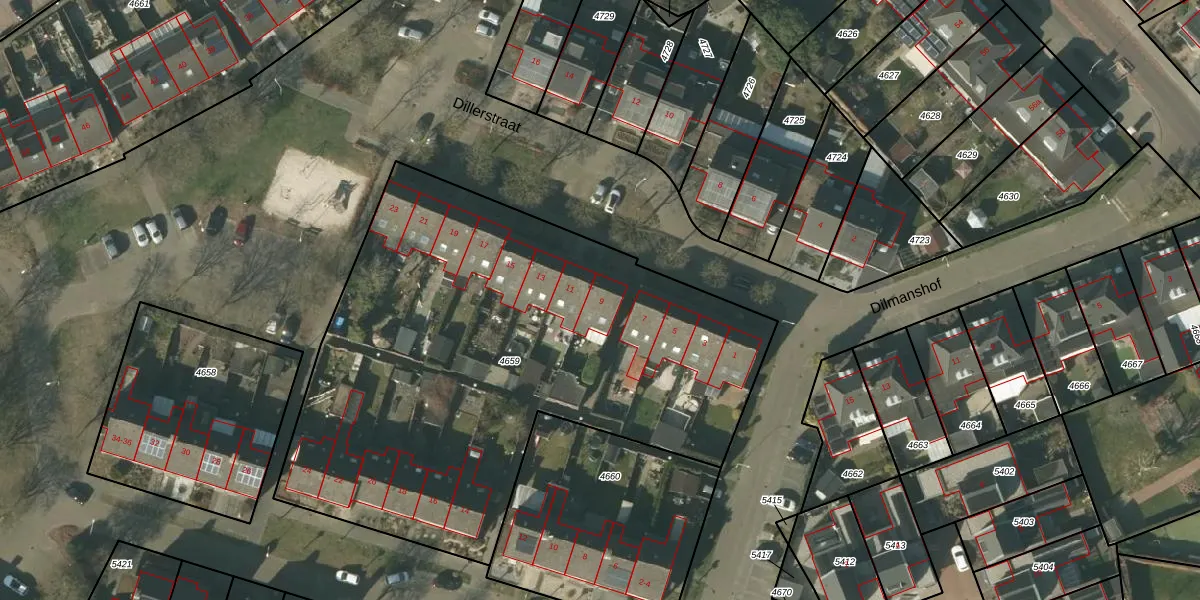 Dillerstraat 9 is gelegen op kadastraal perceel SMR02B4659. Deze kadastrale aanduiding is uniek en wordt gebruikt door het Kadaster om eigendomsrechten en andere zakelijke rechten vast te leggen. Het perceel maakt onderdeel uit van de kadastrale gemeente Someren.