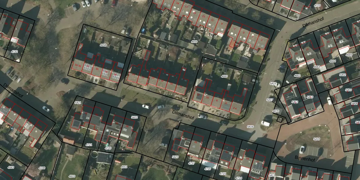 Het perceel waarop Dilmanshof 14 staat heeft een oppervlakte van 3072 m². Dit is een zeer groot perceel. De perceeloppervlakte wordt geregistreerd door het Kadaster. Gedetailleerde informatie over de maten van dit perceel kunt u vinden in het rapport Kadastrale kaart met maatvoering van Dilmanshof 14.