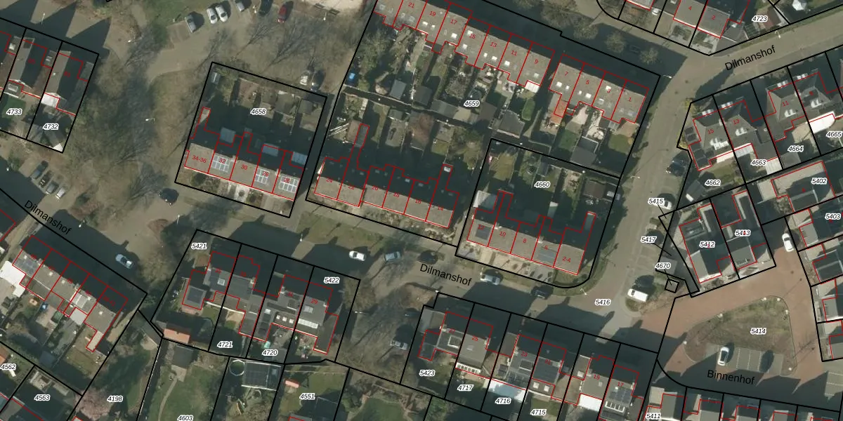 Het perceel waarop Dilmanshof 16 staat heeft een oppervlakte van 3072 m². Dit is een zeer groot perceel. De perceeloppervlakte wordt geregistreerd door het Kadaster. Gedetailleerde informatie over de maten van dit perceel kunt u vinden in het rapport Kadastrale kaart met maatvoering van Dilmanshof 16.