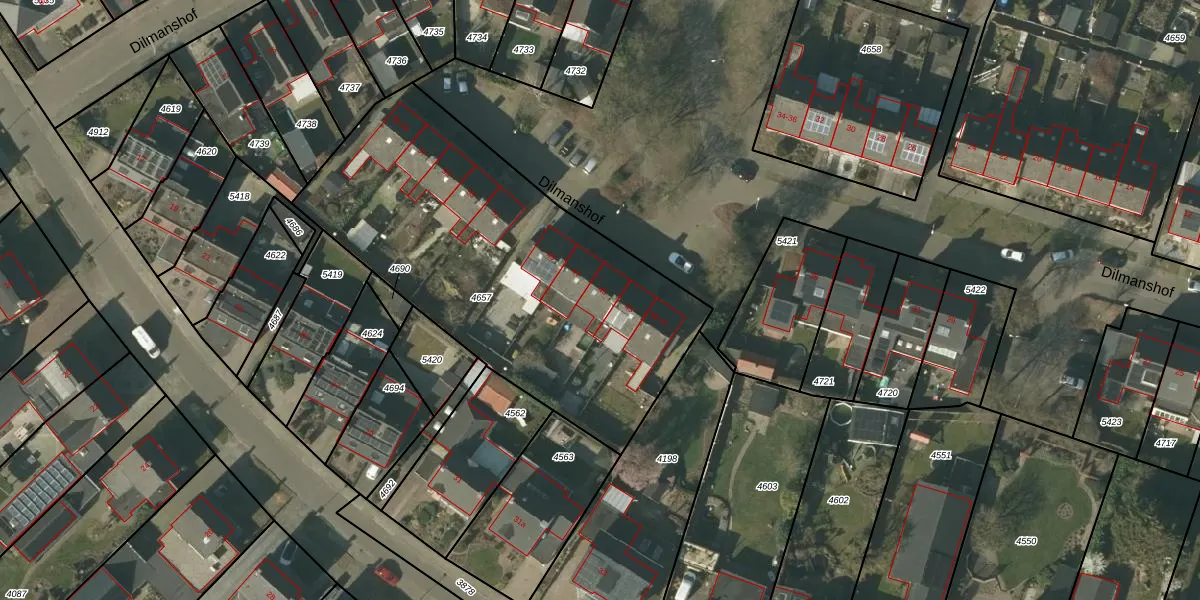 Het perceel waarop Dilmanshof 45 staat heeft een oppervlakte van 1910 m². Dit is een zeer groot perceel. De perceeloppervlakte wordt geregistreerd door het Kadaster. Gedetailleerde informatie over de maten van dit perceel kunt u vinden in het rapport Kadastrale kaart met maatvoering van Dilmanshof 45.