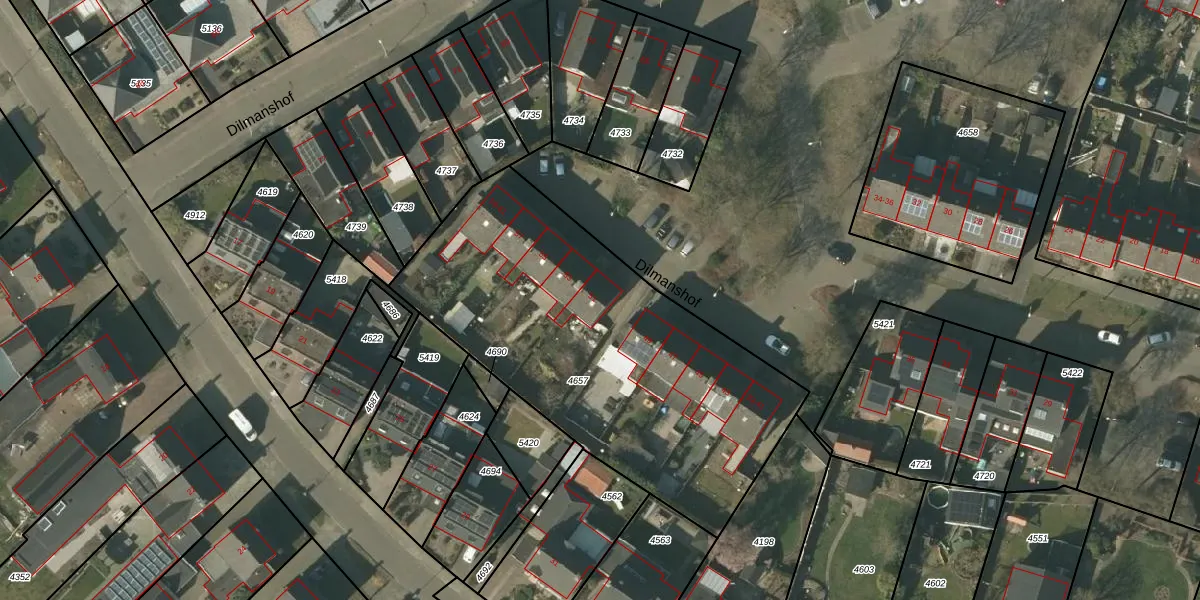 Het perceel waarop Dilmanshof 51 staat heeft een oppervlakte van 1910 m². Dit is een zeer groot perceel. De perceeloppervlakte wordt geregistreerd door het Kadaster. Gedetailleerde informatie over de maten van dit perceel kunt u vinden in het rapport Kadastrale kaart met maatvoering van Dilmanshof 51.