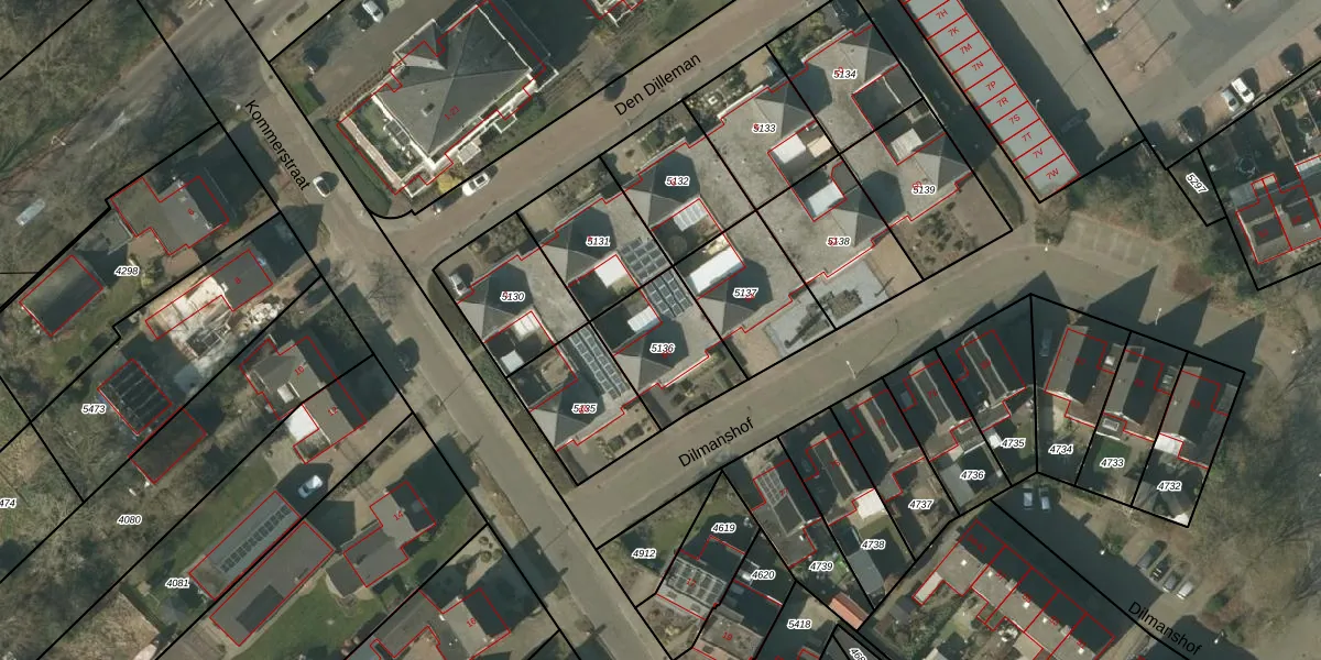 Het perceel waarop Dilmanshof 66 staat heeft een oppervlakte van 305 m². Dit is een groot perceel. De perceeloppervlakte wordt geregistreerd door het Kadaster. Gedetailleerde informatie over de maten van dit perceel kunt u vinden in het rapport Kadastrale kaart met maatvoering van Dilmanshof 66.