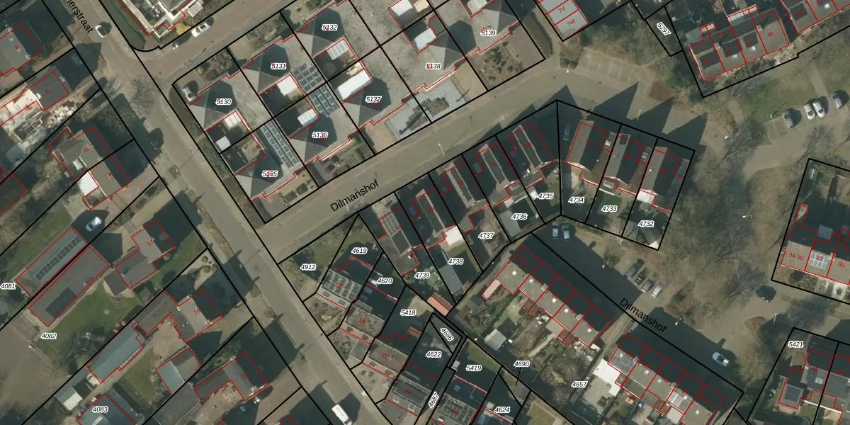 Gebruik de zoekbalk of klik op een perceel voor informatie over de adressen binnen dit perceel.