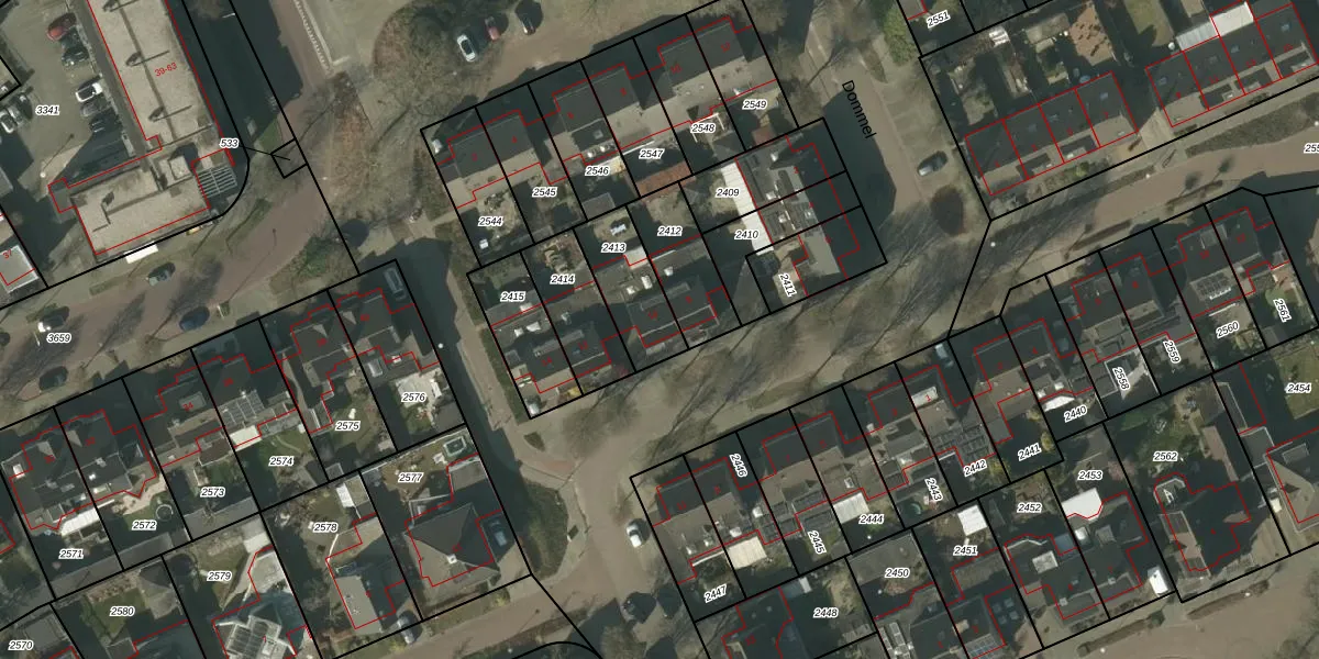 Gebruik de zoekbalk of klik op een perceel voor informatie over de adressen binnen dit perceel.