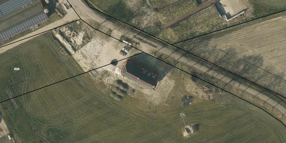 Het perceel waarop Dooleggersbaan 12 staat heeft een oppervlakte van 3,4 ha. Dit is een zeer groot perceel. De perceeloppervlakte wordt geregistreerd door het Kadaster. Gedetailleerde informatie over de maten van dit perceel kunt u vinden in het rapport Kadastrale kaart met maatvoering van Dooleggersbaan 12.