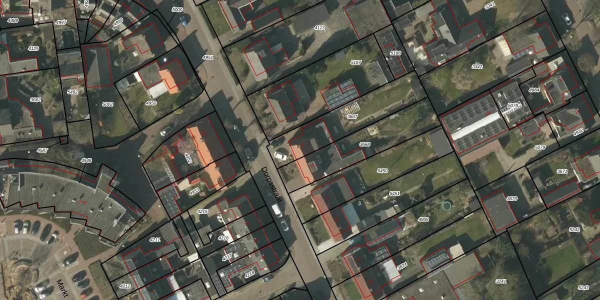 Het perceel waarop Dorpsstraat 13 staat heeft een oppervlakte van 539 m². Dit is een groot perceel. De perceeloppervlakte wordt geregistreerd door het Kadaster. Gedetailleerde informatie over de maten van dit perceel kunt u vinden in het rapport Kadastrale kaart met maatvoering van Dorpsstraat 13.