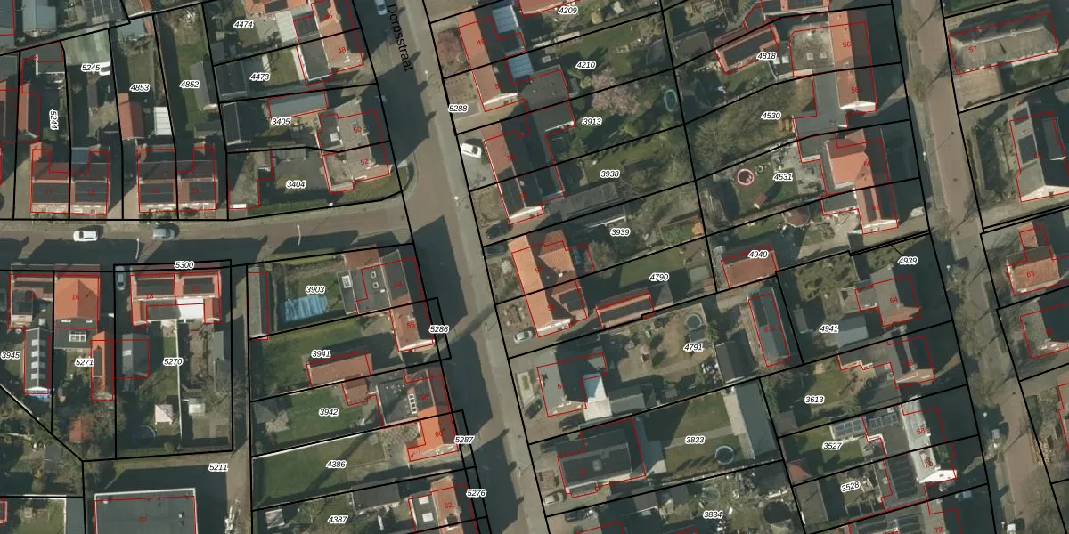 Het perceel waarop Dorpsstraat 57 staat heeft een oppervlakte van 444 m². Dit is een groot perceel. De perceeloppervlakte wordt geregistreerd door het Kadaster. Gedetailleerde informatie over de maten van dit perceel kunt u vinden in het rapport Kadastrale kaart met maatvoering van Dorpsstraat 57.