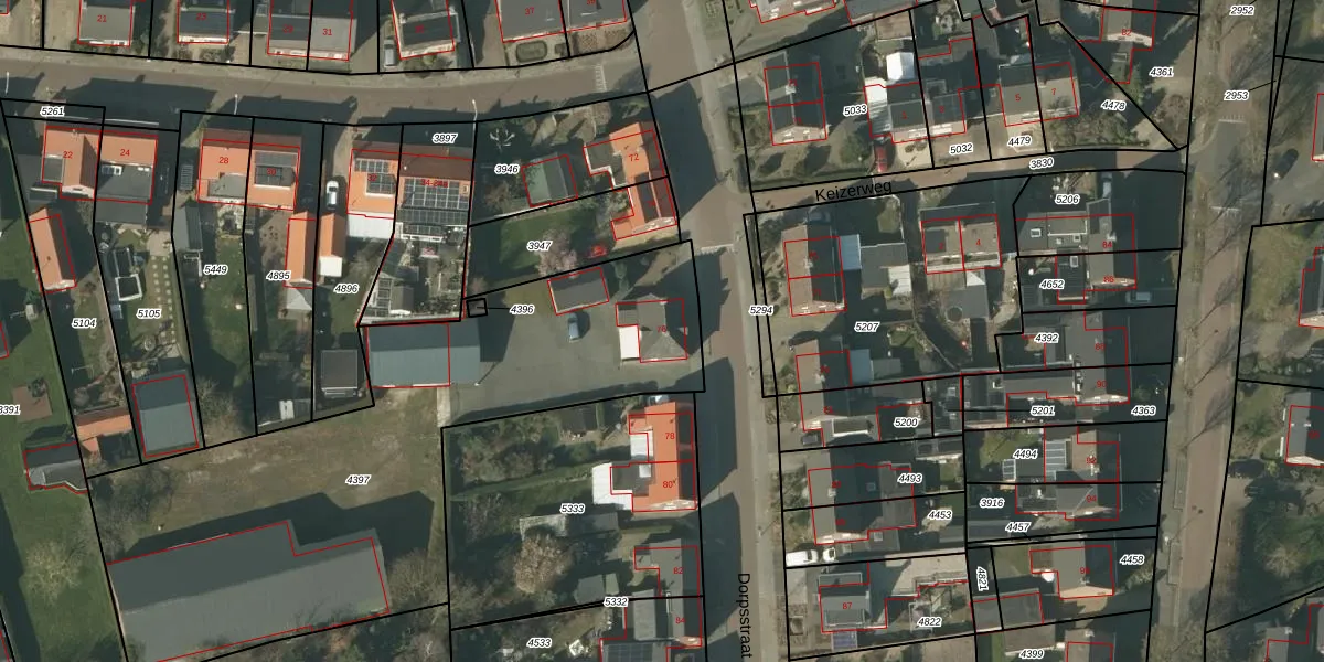 Gebruik de zoekbalk of klik op een perceel voor informatie over de adressen binnen dit perceel.