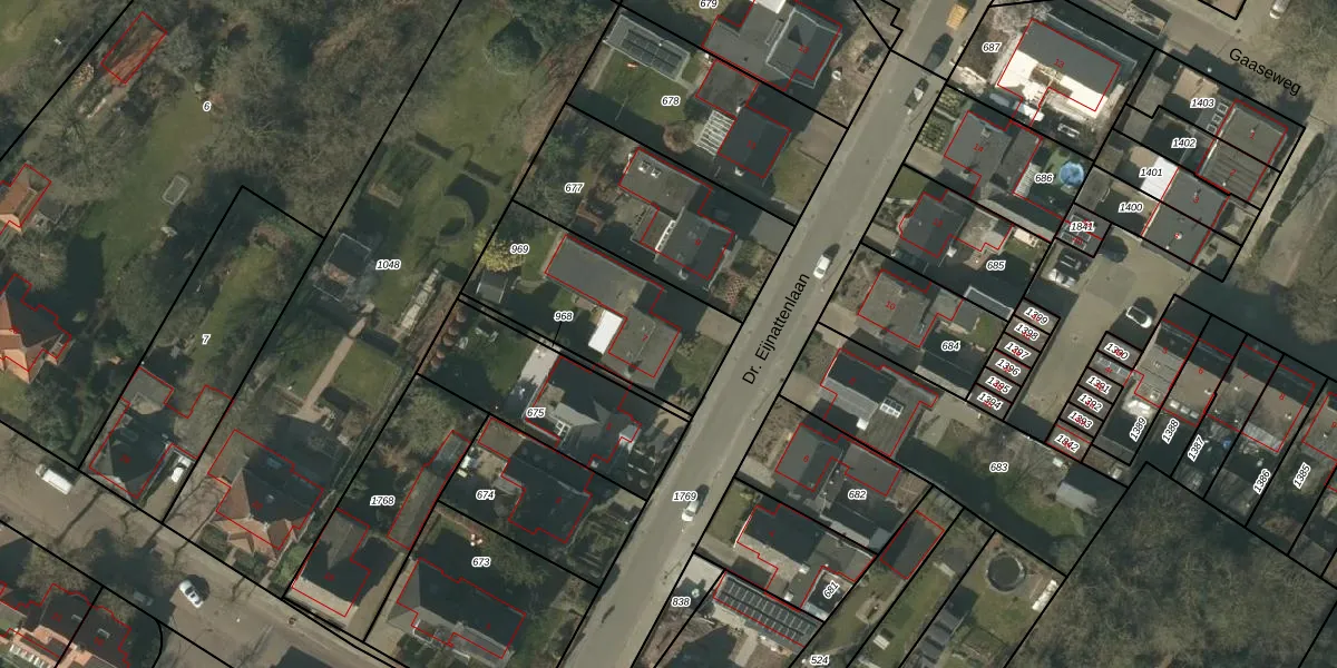 Het perceel waarop Dr. Eijnattenlaan 7 staat heeft een oppervlakte van 612 m². Dit is een groot perceel. De perceeloppervlakte wordt geregistreerd door het Kadaster. Gedetailleerde informatie over de maten van dit perceel kunt u vinden in het rapport Kadastrale kaart met maatvoering van Dr. Eijnattenlaan 7.