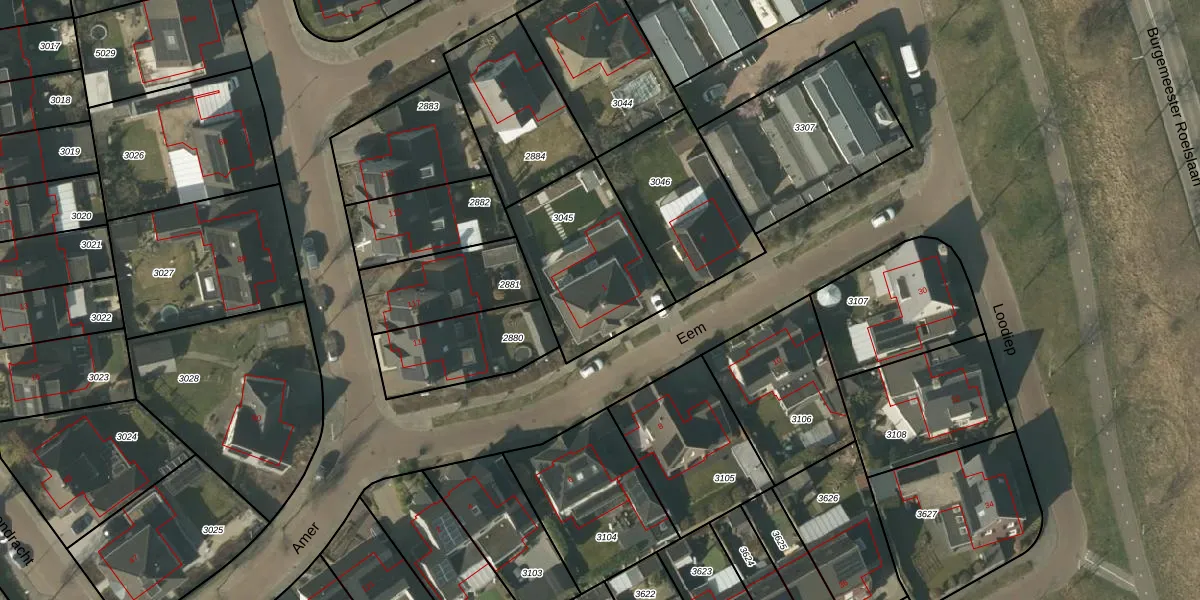Gebruik de zoekbalk of klik op een perceel voor informatie over de adressen binnen dit perceel.
