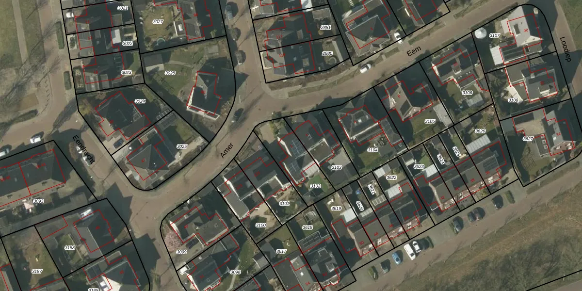 Gebruik de zoekbalk of klik op een perceel voor informatie over de adressen binnen dit perceel.