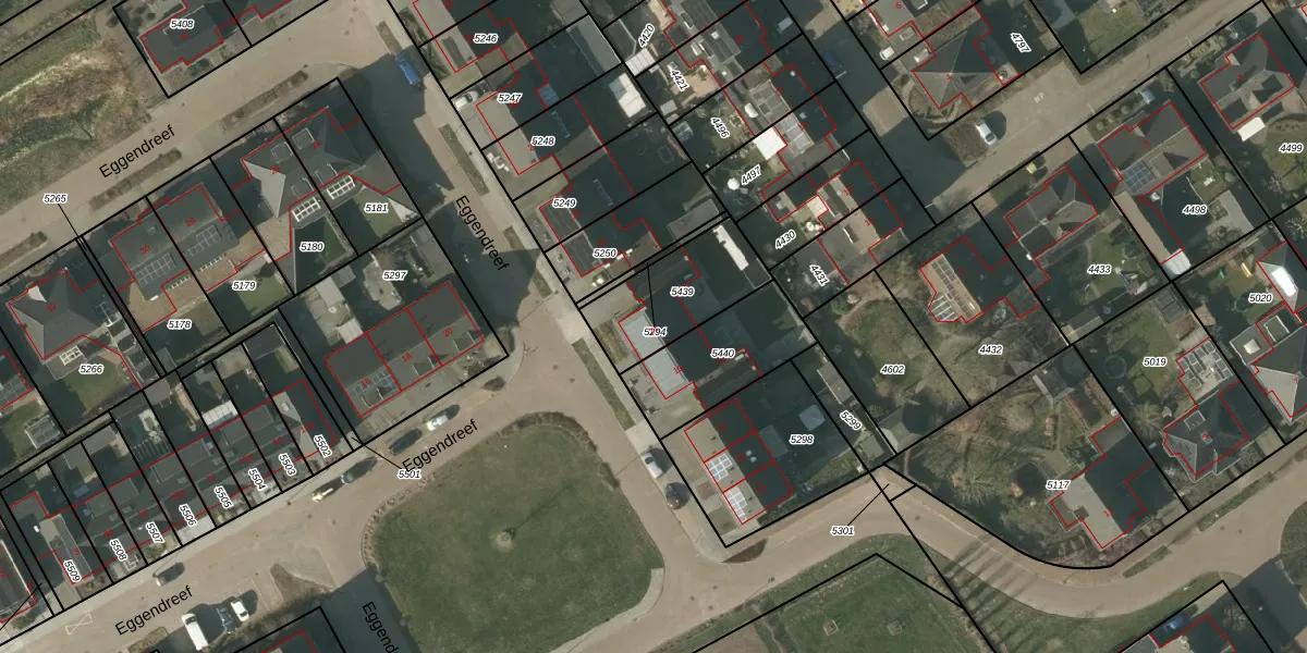 Eggendreef 21 is gelegen op kadastraal perceel SMR02G5439. Deze kadastrale aanduiding is uniek en wordt gebruikt door het Kadaster om eigendomsrechten en andere zakelijke rechten vast te leggen. Het perceel maakt onderdeel uit van de kadastrale gemeente Someren.