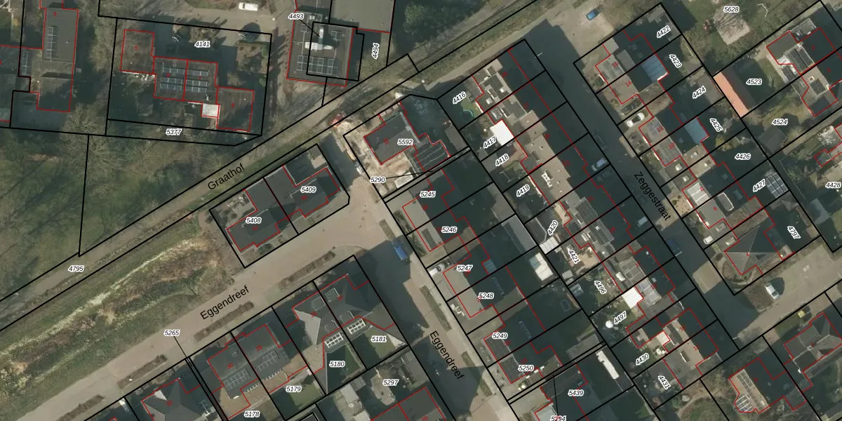 Eggendreef 33 is gelegen op kadastraal perceel SMR02G5245. Deze kadastrale aanduiding is uniek en wordt gebruikt door het Kadaster om eigendomsrechten en andere zakelijke rechten vast te leggen. Het perceel maakt onderdeel uit van de kadastrale gemeente Someren.