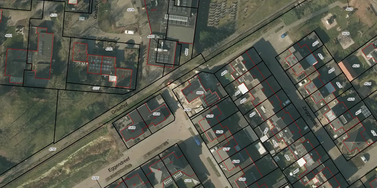 Eggendreef 35 is gelegen op kadastraal perceel SMR02G5592. Deze kadastrale aanduiding is uniek en wordt gebruikt door het Kadaster om eigendomsrechten en andere zakelijke rechten vast te leggen. Het perceel maakt onderdeel uit van de kadastrale gemeente Someren.
