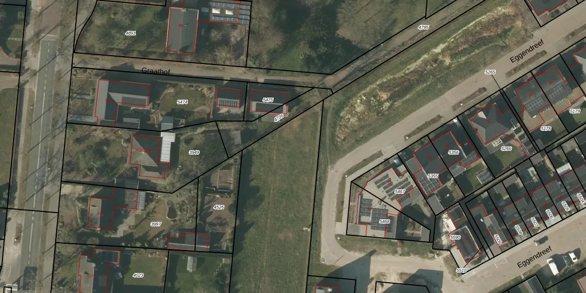 Het perceel waarop Eggendreef 41-a staat heeft een oppervlakte van 4741 m². Dit is een zeer groot perceel. De perceeloppervlakte wordt geregistreerd door het Kadaster. Gedetailleerde informatie over de maten van dit perceel kunt u vinden in het rapport Kadastrale kaart met maatvoering van Eggendreef 41-a.