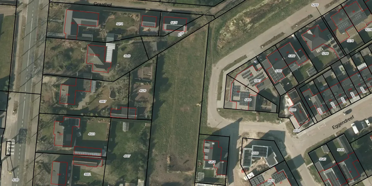 Het perceel waarop Eggendreef 41-e staat heeft een oppervlakte van 4741 m². Dit is een zeer groot perceel. De perceeloppervlakte wordt geregistreerd door het Kadaster. Gedetailleerde informatie over de maten van dit perceel kunt u vinden in het rapport Kadastrale kaart met maatvoering van Eggendreef 41-e.