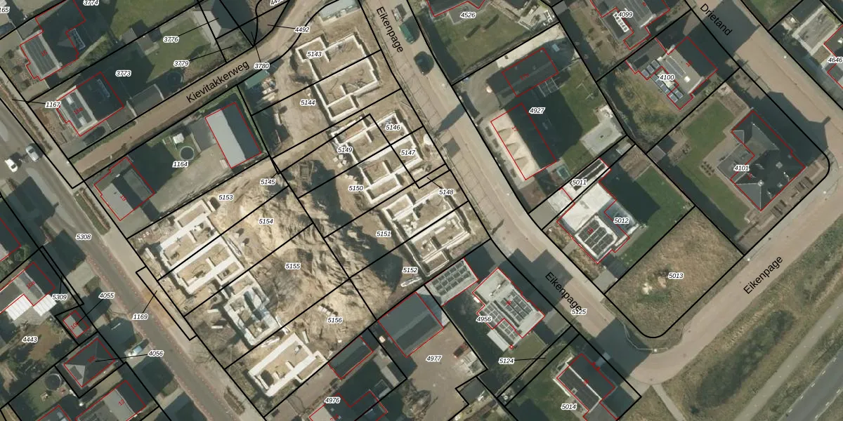 Het perceel waarop Eikenpage 34 staat heeft een oppervlakte van 355 m². Dit is een groot perceel. De perceeloppervlakte wordt geregistreerd door het Kadaster. Gedetailleerde informatie over de maten van dit perceel kunt u vinden in het rapport Kadastrale kaart met maatvoering van Eikenpage 34.