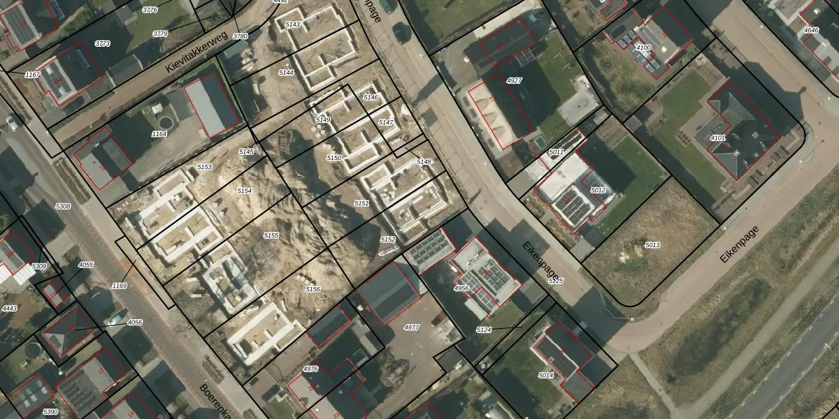 Het perceel waarop Eikenpage 34-a staat heeft een oppervlakte van 369 m². Dit is een groot perceel. De perceeloppervlakte wordt geregistreerd door het Kadaster. Gedetailleerde informatie over de maten van dit perceel kunt u vinden in het rapport Kadastrale kaart met maatvoering van Eikenpage 34-a.